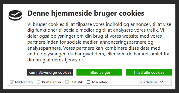 I mange tilfælde er cookies uundværlige for at hjemmesiden kan fungere korrekt.