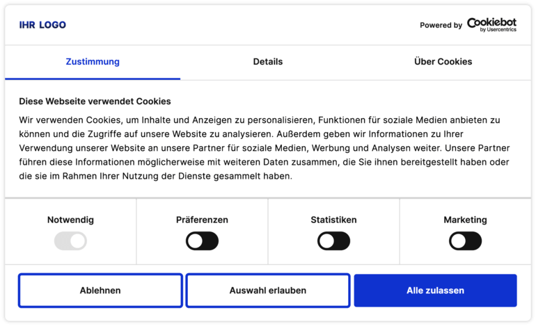 Mit den neuen Zustimmungsbannern von Cookiebot CMP bekommen Sie –