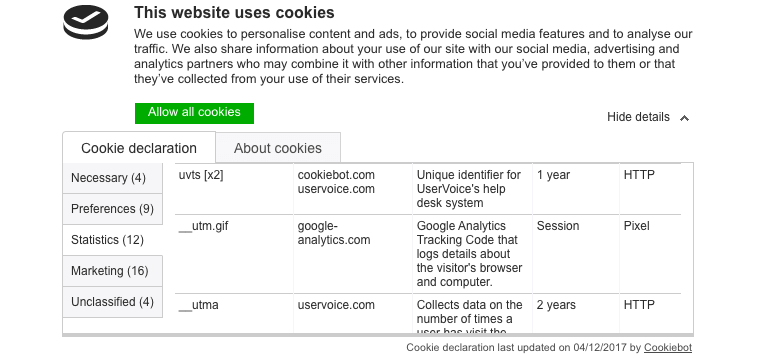 Die eingesetzten Cookies ändern sich. Daher ist es wichtig, einzelne Cookie-Arten immer wieder zu überprüfen.