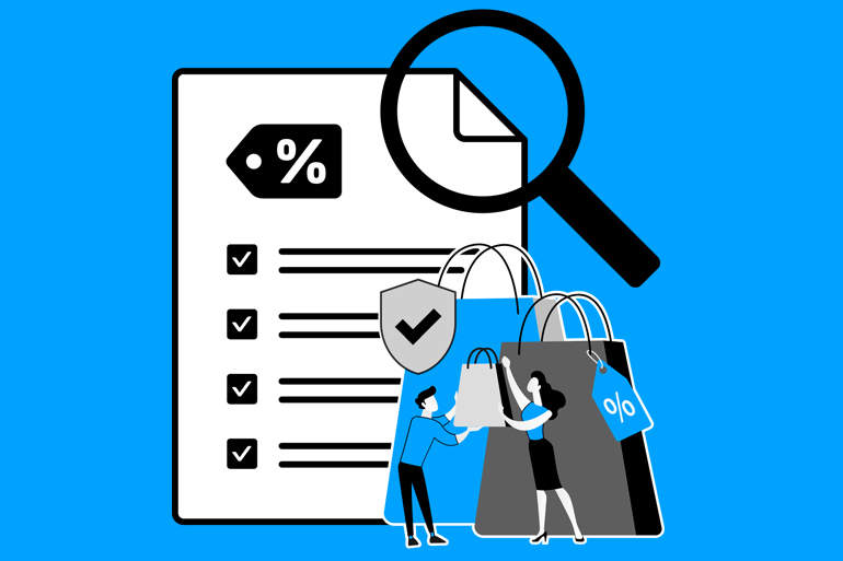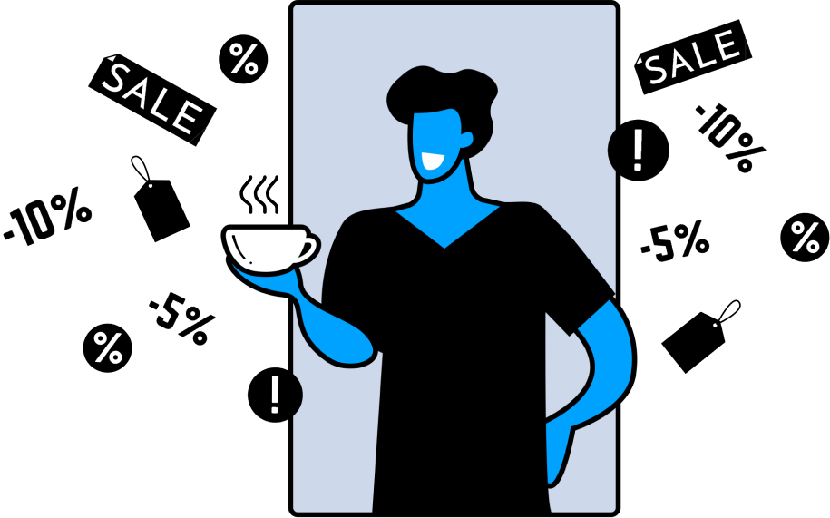 Illustrarion of a person surrounded by sale icons