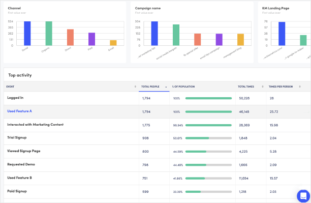 Kiss Metrics est un outil de suivi conçu spécifiquement pour analyser la manière dont vos utilisateurs convertissent sur votre domaine, en mettant l'accent sur la réduction du taux de désabonnement et l'augmentation de l'engagement par le biais de campagnes publicitaires sur les médias sociaux et de marketing par courriel.